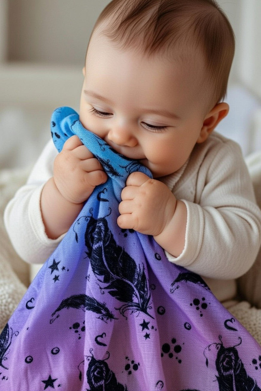 Nos doudous en mousseline sont bien plus que de simples bavoirs. D'une douceur incroyable et aux couleurs particulièrement vives, ils fascinent les yeux de ton bébé et peuvent également servir de doudou ou de foulard. Enroulé dans le Écharpe de portage ou Écharpe de portage anneaux tu peux aussi les utiliser comme repose-nuque pour ton bébé.