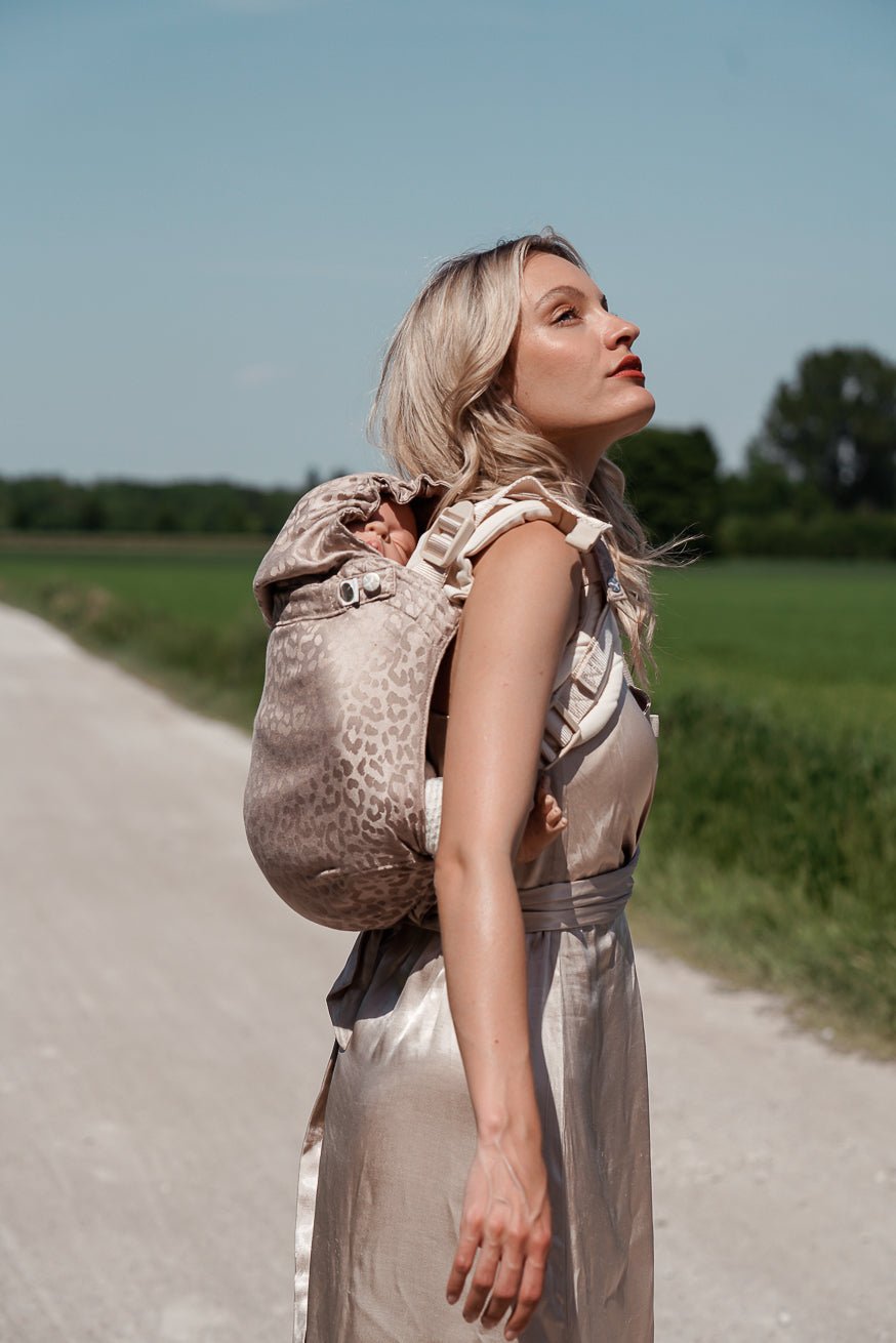 Das absolute Tragetuch-Gefühl, nur als Babytrage. Mit anschmiegsamen Tragetuch Schulterträgern, sitzt diese Babytrage immer perfekt auf dich abgestimmt!