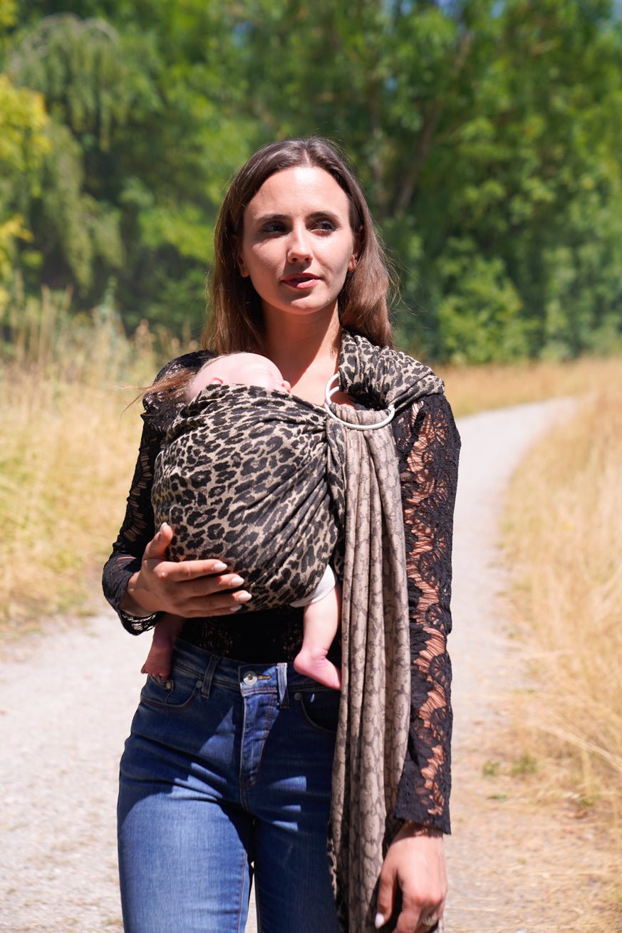 Le design de safari populaire dans les couleurs chaudes, le brun et le beige le donne Écharpe de portage anneaux Leylafari un look élégant et unique. Vous êtes donc non seulement bien préparé pour vos aventures quotidiennes, mais vous tracez également toutes les vues sur vous.