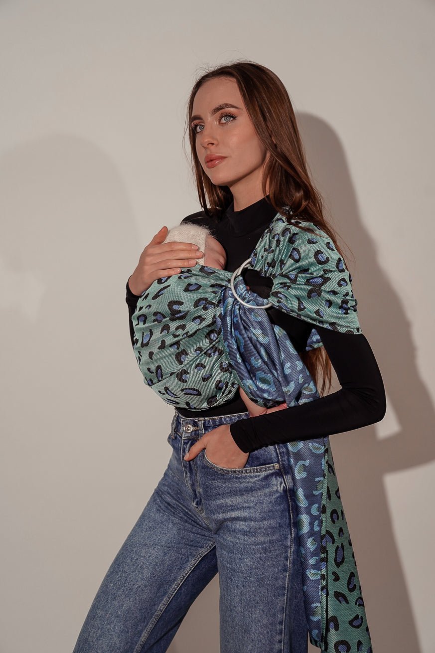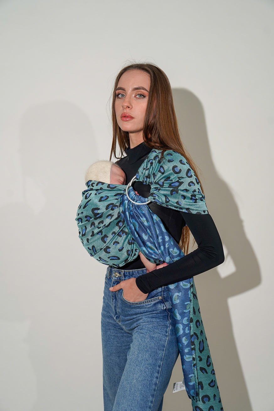 Ce rêve doux soyeux en viscose 100% bambou est juste le bon Écharpe de portage anneaux Pour les mamans conscientes de la mode avec style! En raison du design safari intemporel dans de beaux tons bleus, le Porte-Bébé Style Safari Turkuaz avec commodité.