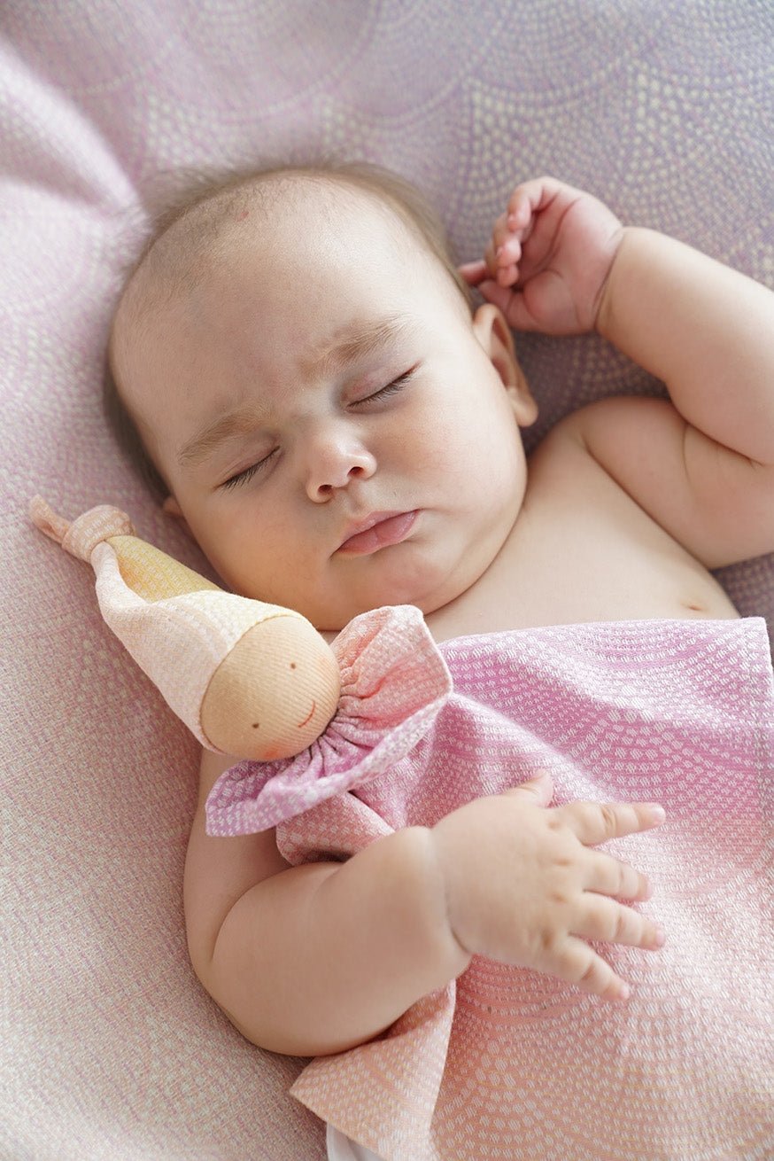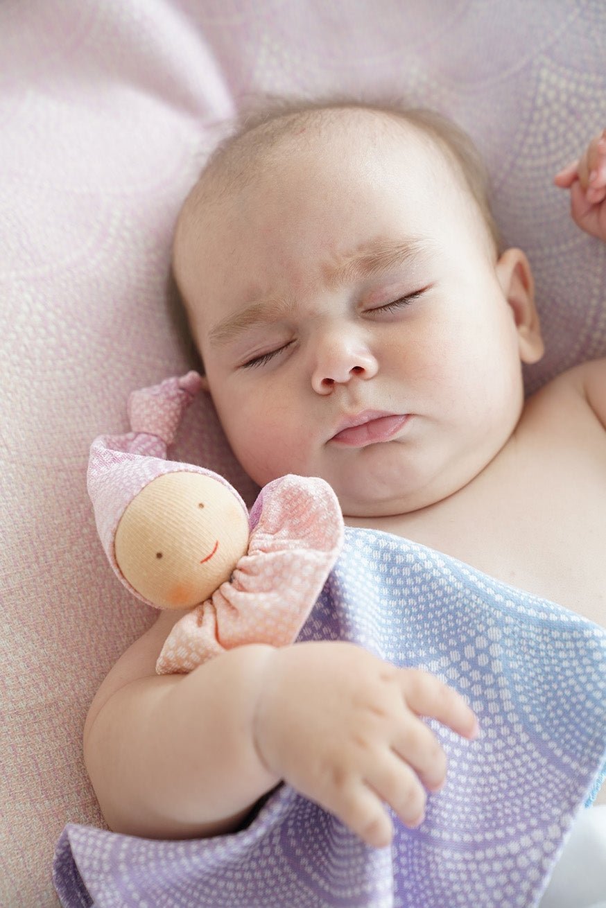 Nos serviettes câlines avec tête Waldorf donnent toujours à votre enfant la possibilité de refléter son propre monde d'émotions. Les yeux et la bouche implicites peuvent être perçus comme riant ou tristes et font du petit compagnon de jeu un compagnon de confiance tout au long du précieux temps de bébé.
