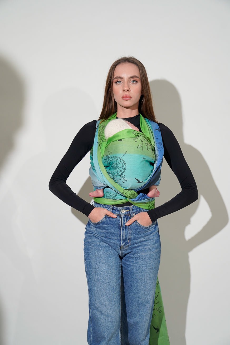Perfekt, wenn du die Babytrage mit deinem Partner teilst! Unten Schnell geklckt, oben nichts verstellt - einfach anlegen, knoten, fertig!