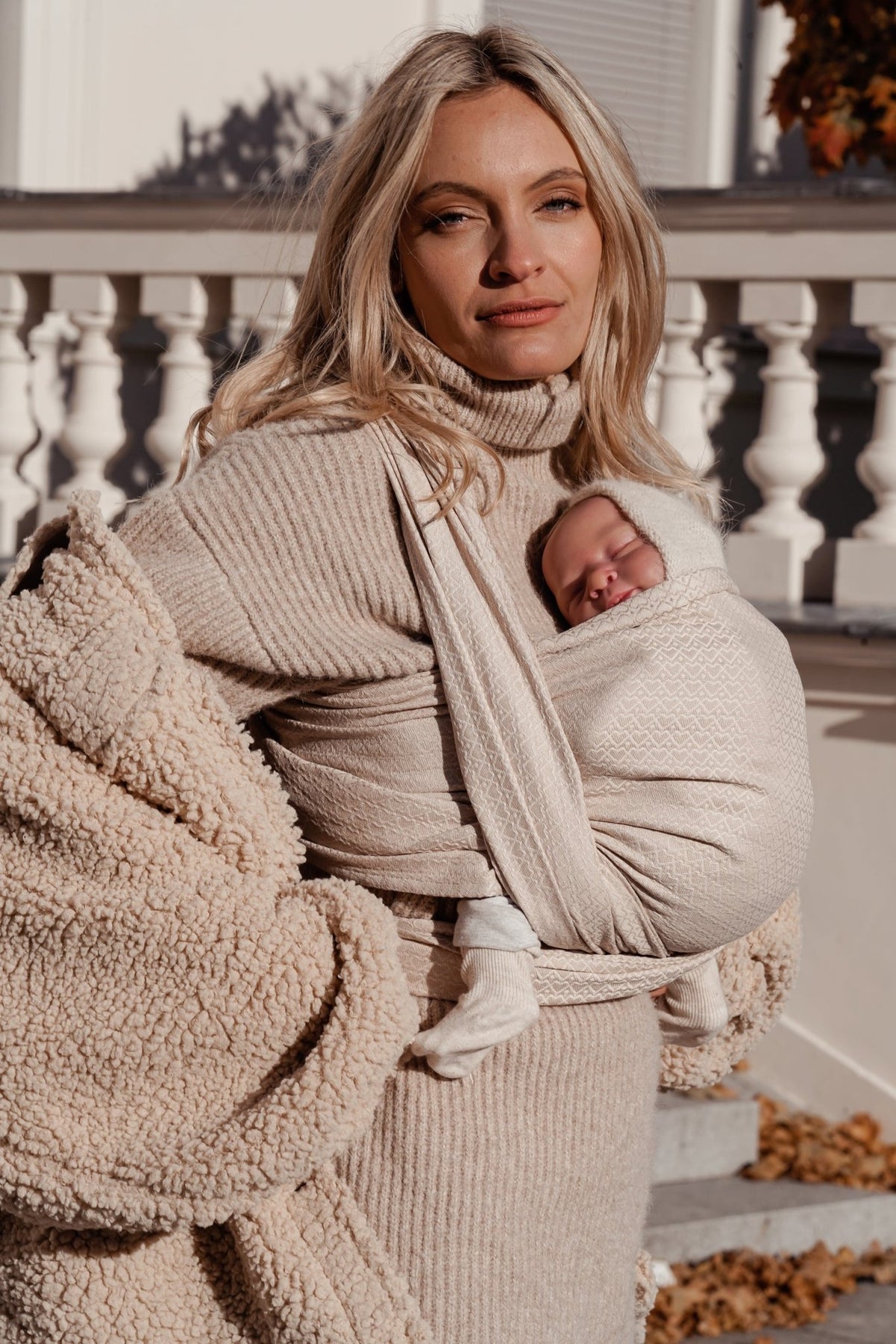 Discret, câlin et incroyablement beau - 100 % meilleur coton biologique facile d'entretien, tissé de première classe dans un tissage jacquard d'une douceur unique, font de notre belle Heart2Heart Cream un porte-bébé de rêve particulièrement câlin.
