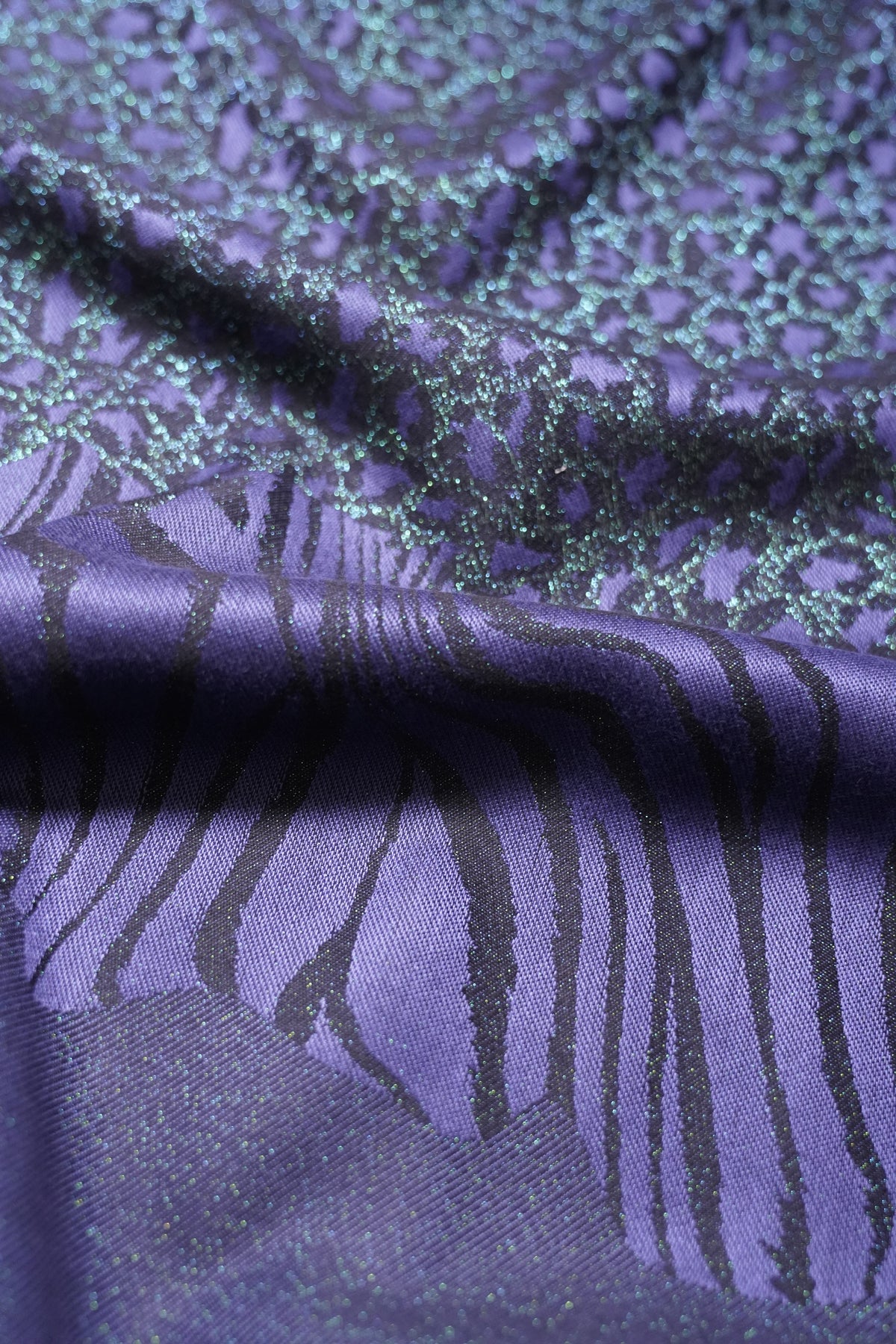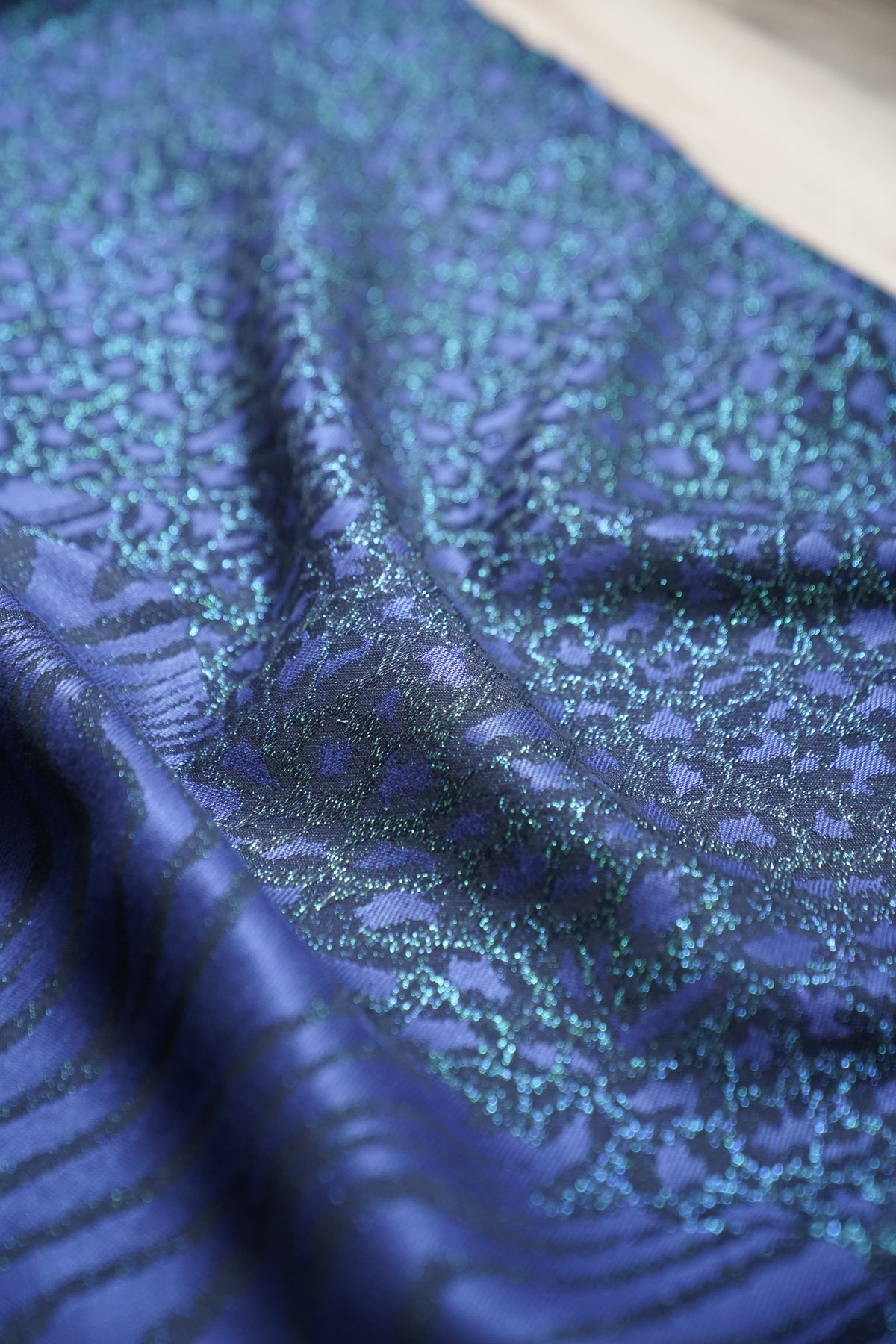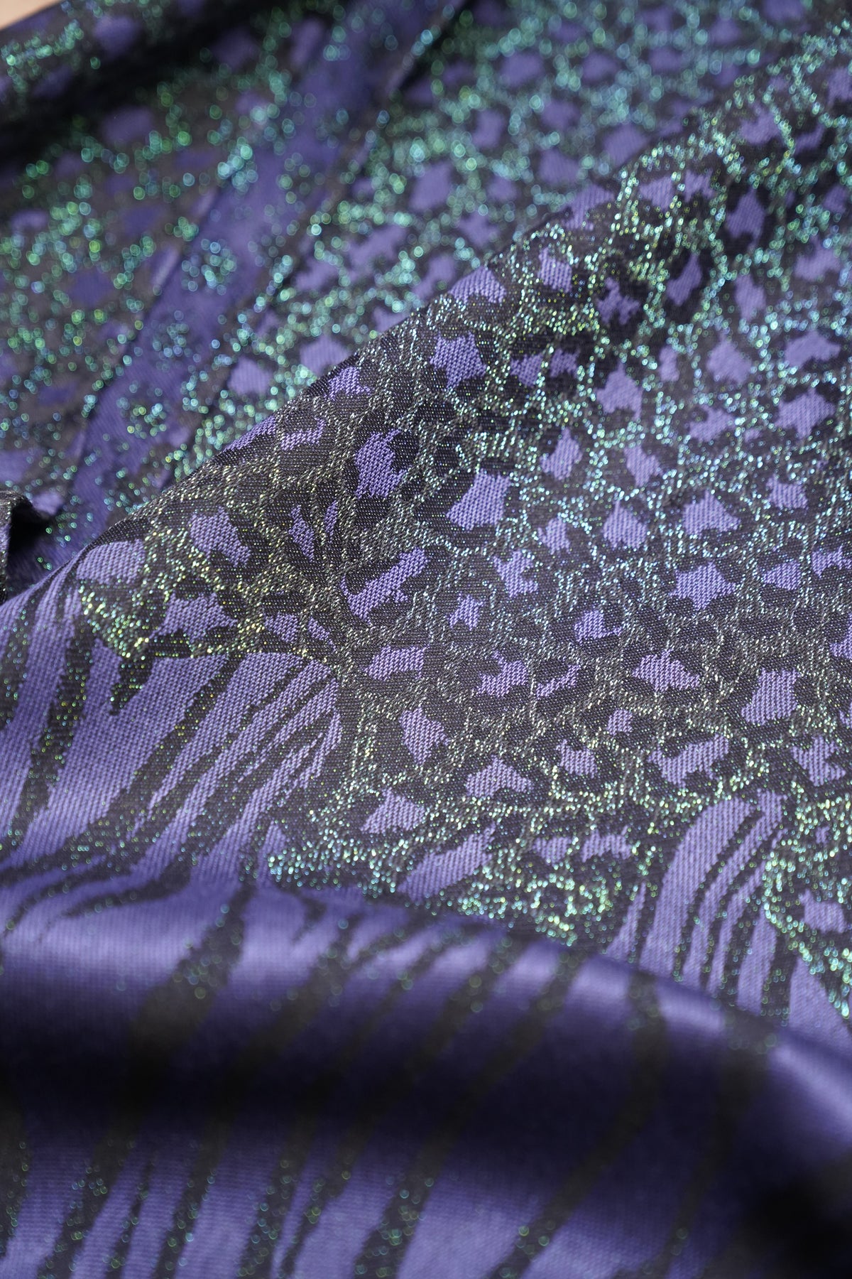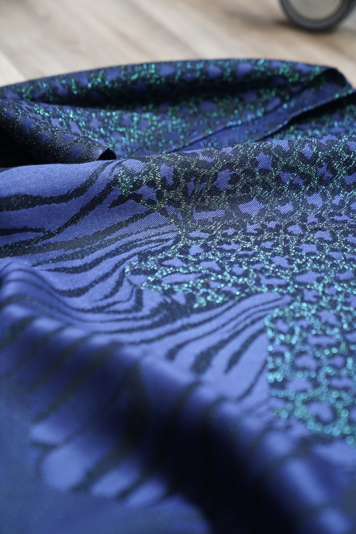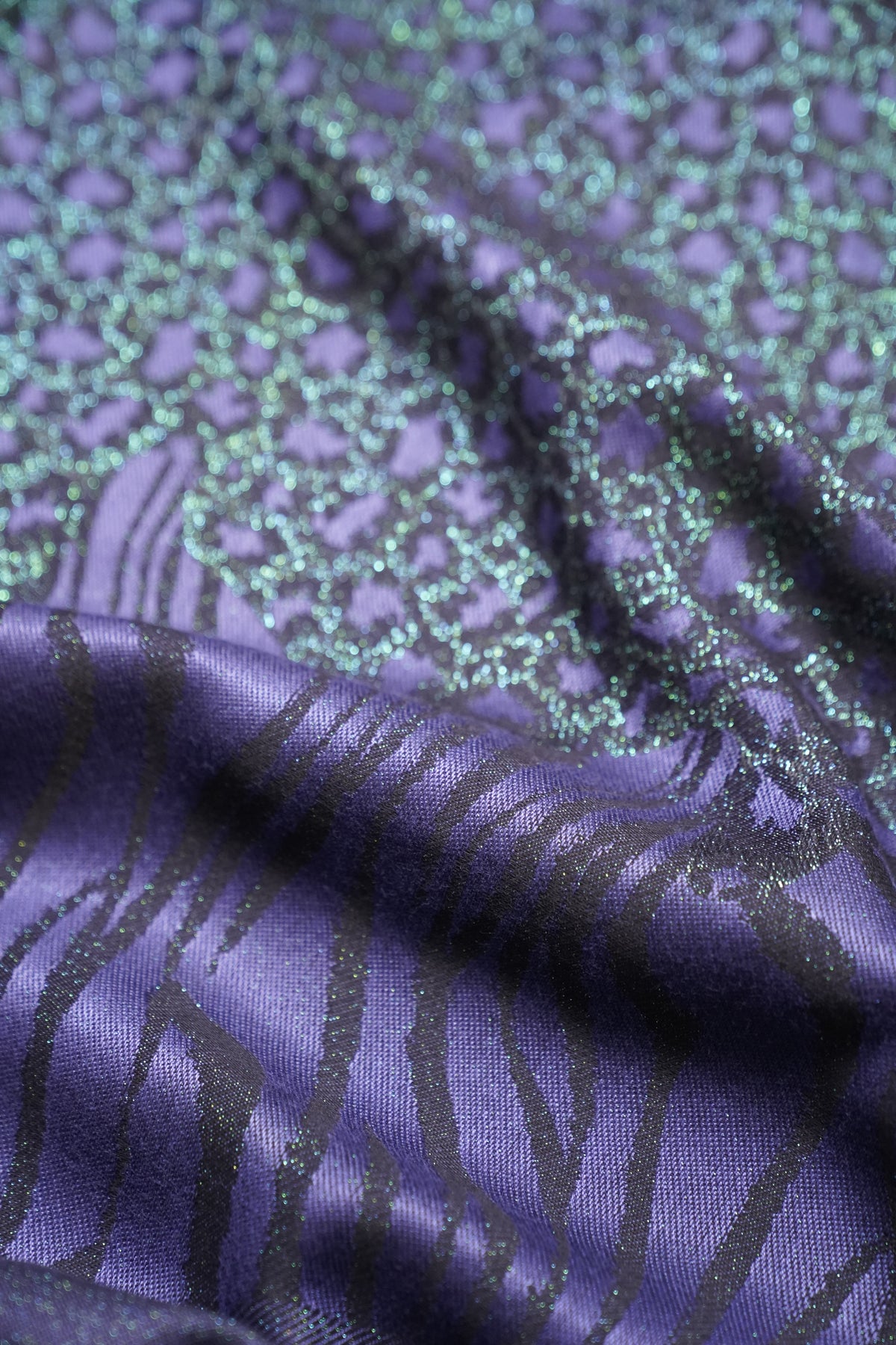 Es gibt Stoffe, die man nur anfasst – und es gibt Stoffe, die man spürt. Das Tragetuch Majestic Motherhood gehört zu den letzteren. Tiefes, sattes Violett fließt wie eine geheimnisvolle Nacht durch das Gewebe, durchzogen von feinem, grünem Glitzer, der sich im Licht wie Sternenregen bricht. Schon beim ersten Griff gleitet der Stoff wie Wasser über deine Hände. Die Viskose schenkt ihm seidige Weichheit, während die Bio-Baumwolle für Stabilität und Halt sorgt. Es ist ein Stoff, der sich anschmiegt, nachgibt und doch stützt – wie eine zweite Haut, die euch beide miteinander verbindet.
