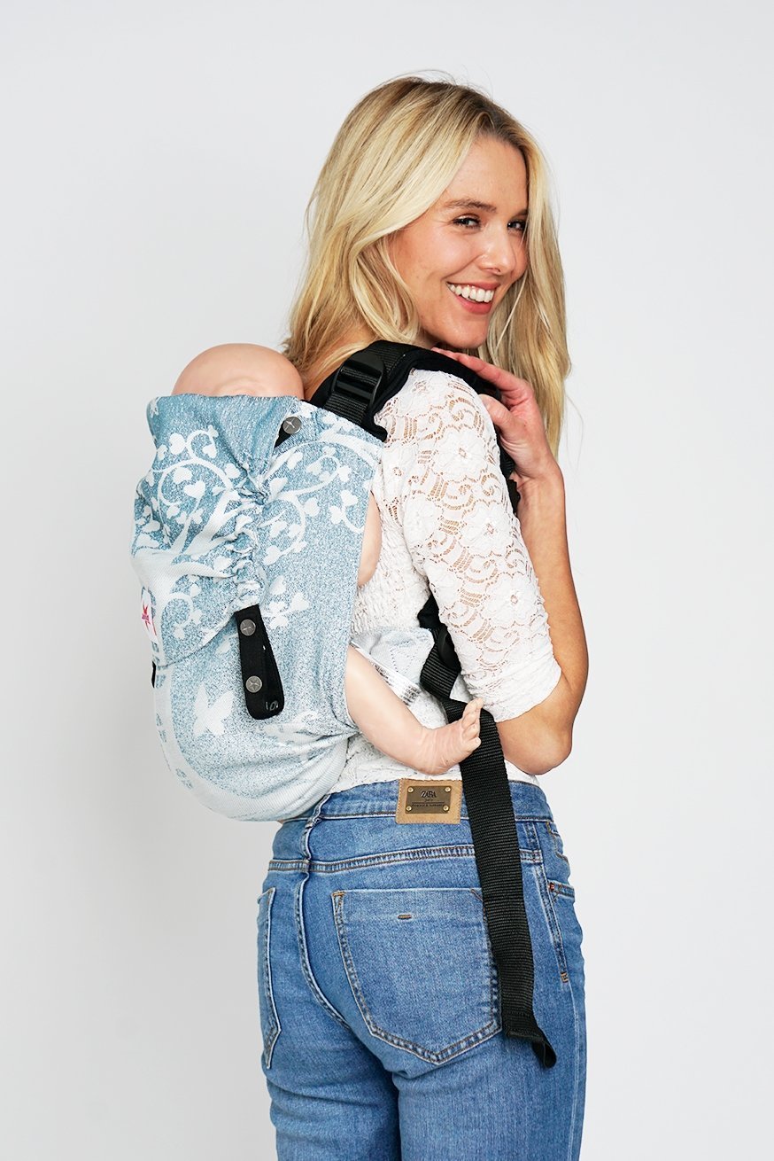 Das absolute Tragetuch-Gefühl, nur als Babytrage. Mit anschmiegsamen Tragetuch Schulterträgern, sitzt diese Babytrage immer perfekt auf dich abgestimmt!