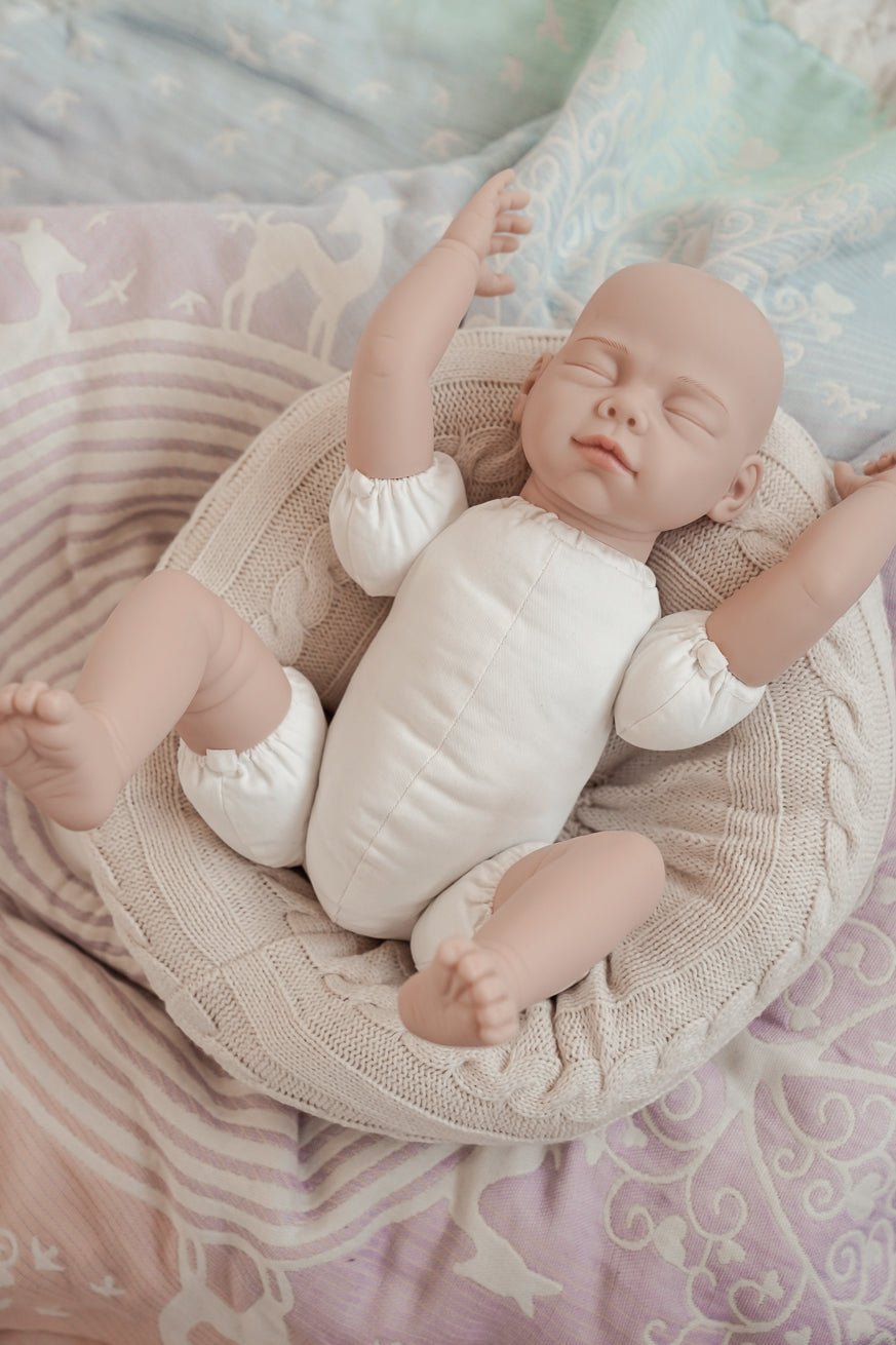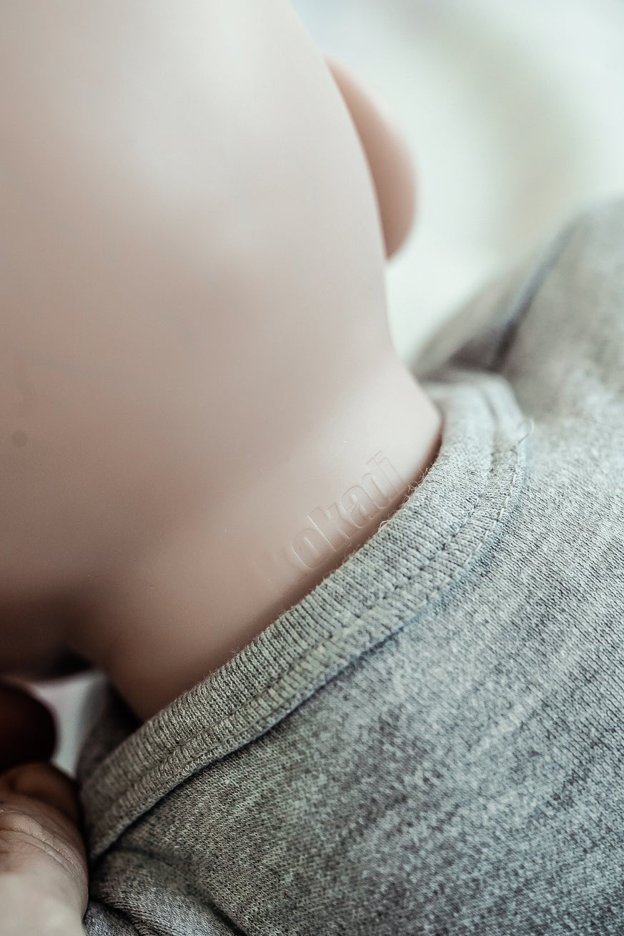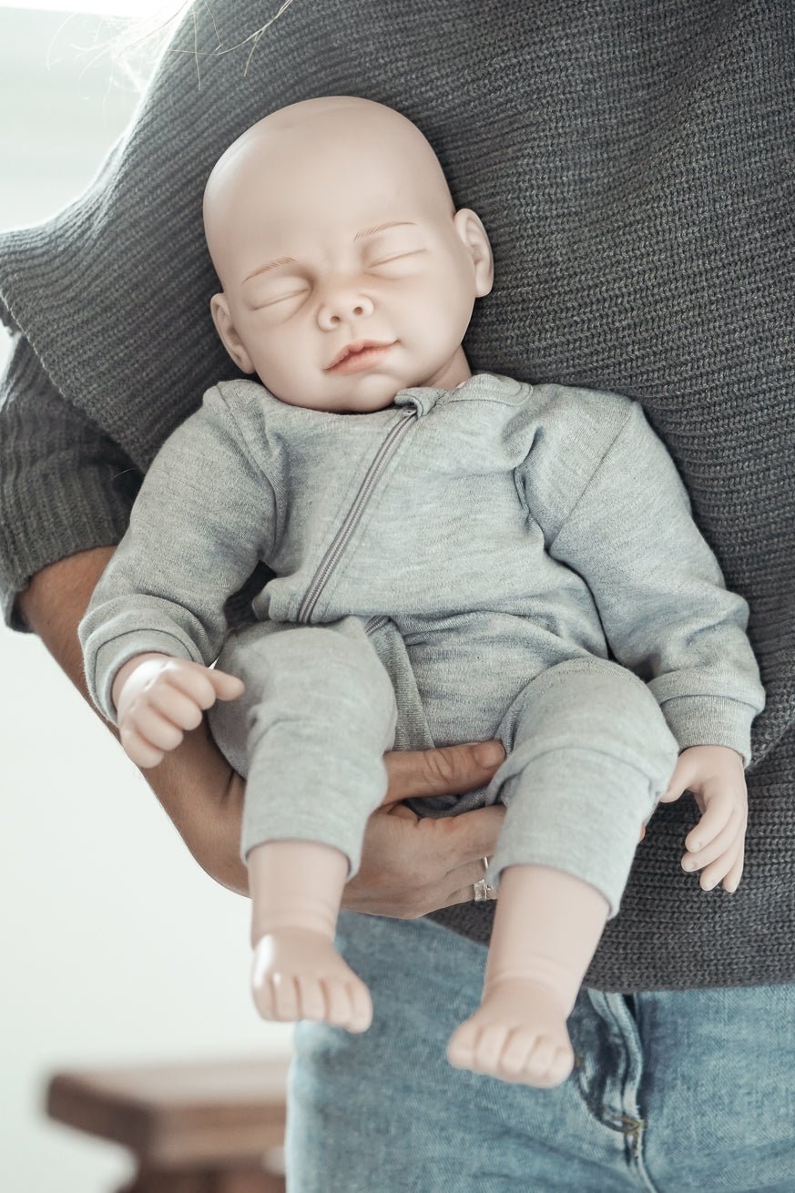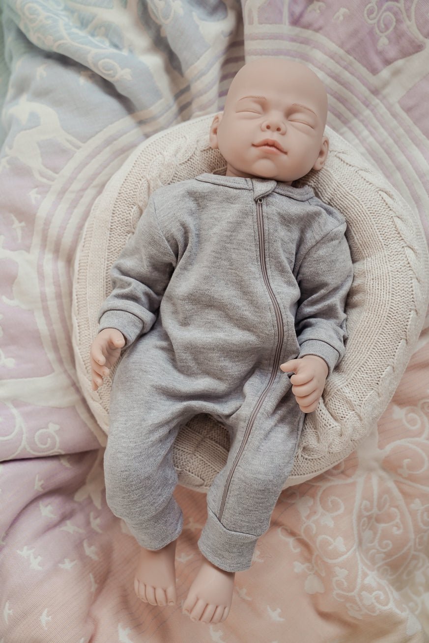 Notre poupée est livrée avec une barboteuse grise 100% coton avec une fermeture éclair pour un habillage et un déshabillage faciles et rapides.