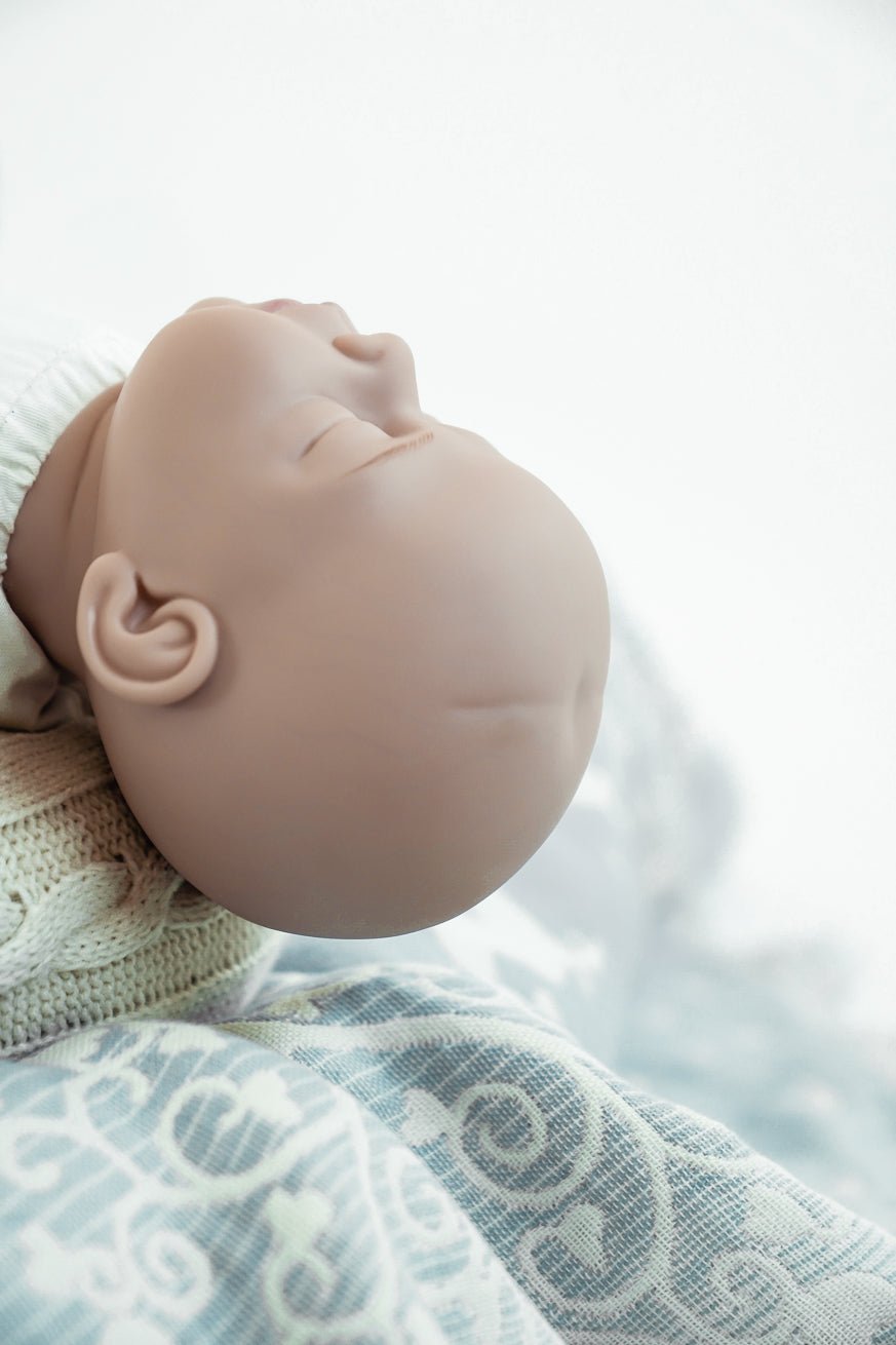 La tête lourde et d'apparence naturelle de la poupée simule l'incapacité d'un nouveau-né à tenir sa tête droite et aide à expliquer et à démontrer l'importance de bien soutenir l'enfant.
